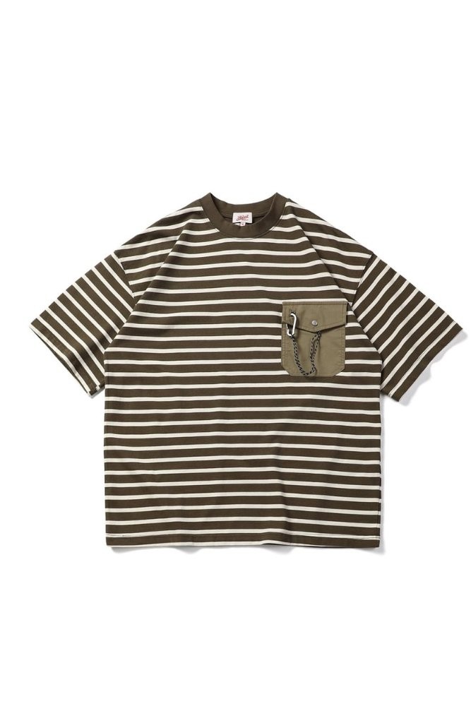 [Overseas]  Stripe Chest Pocket Tee In Green