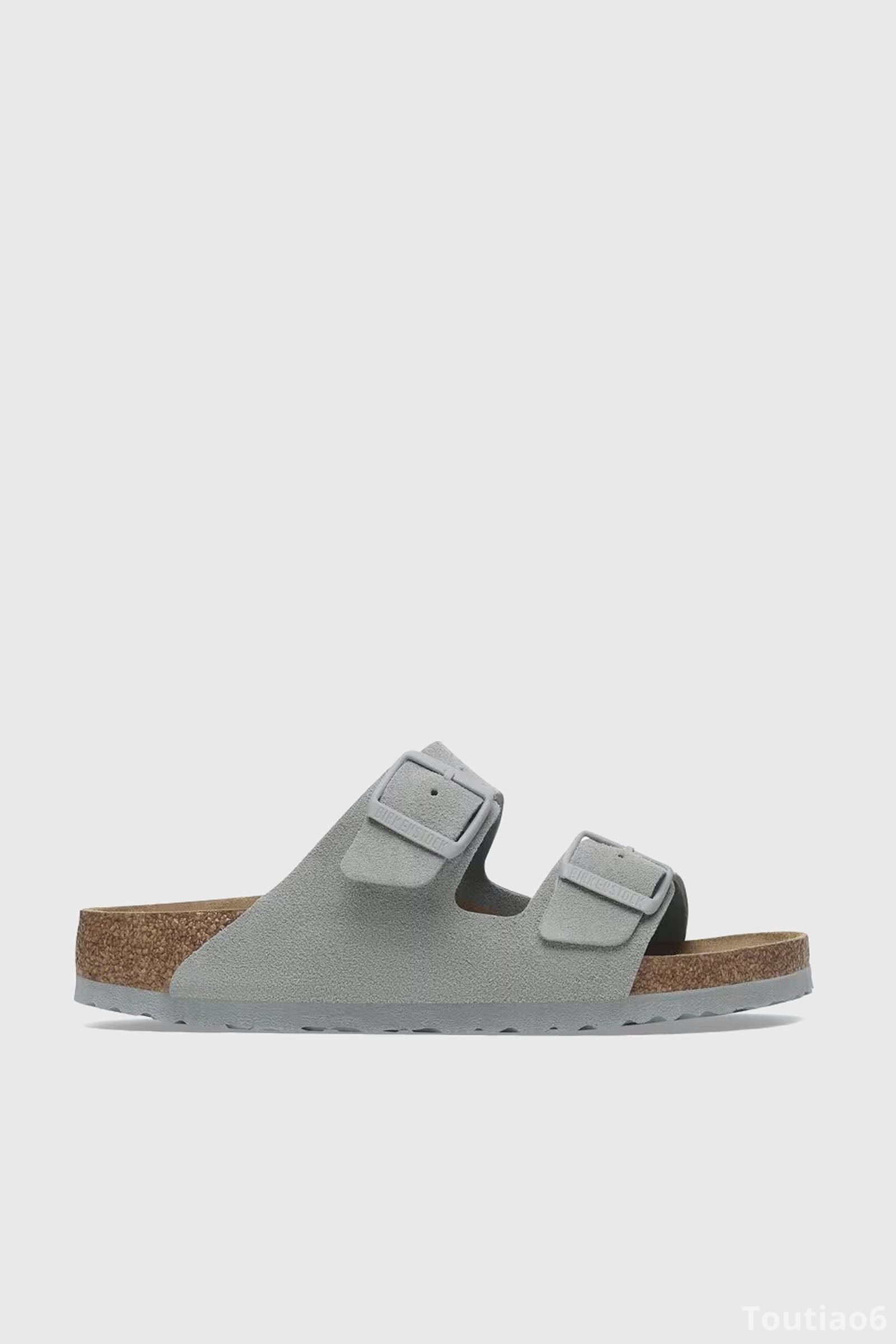 Anatomically shaped cork-latex footbed Upper: suede Footbed lining: suede Sole: EVA Details: two straps, each with an individually adjustable metal pin buckle with a textile feel