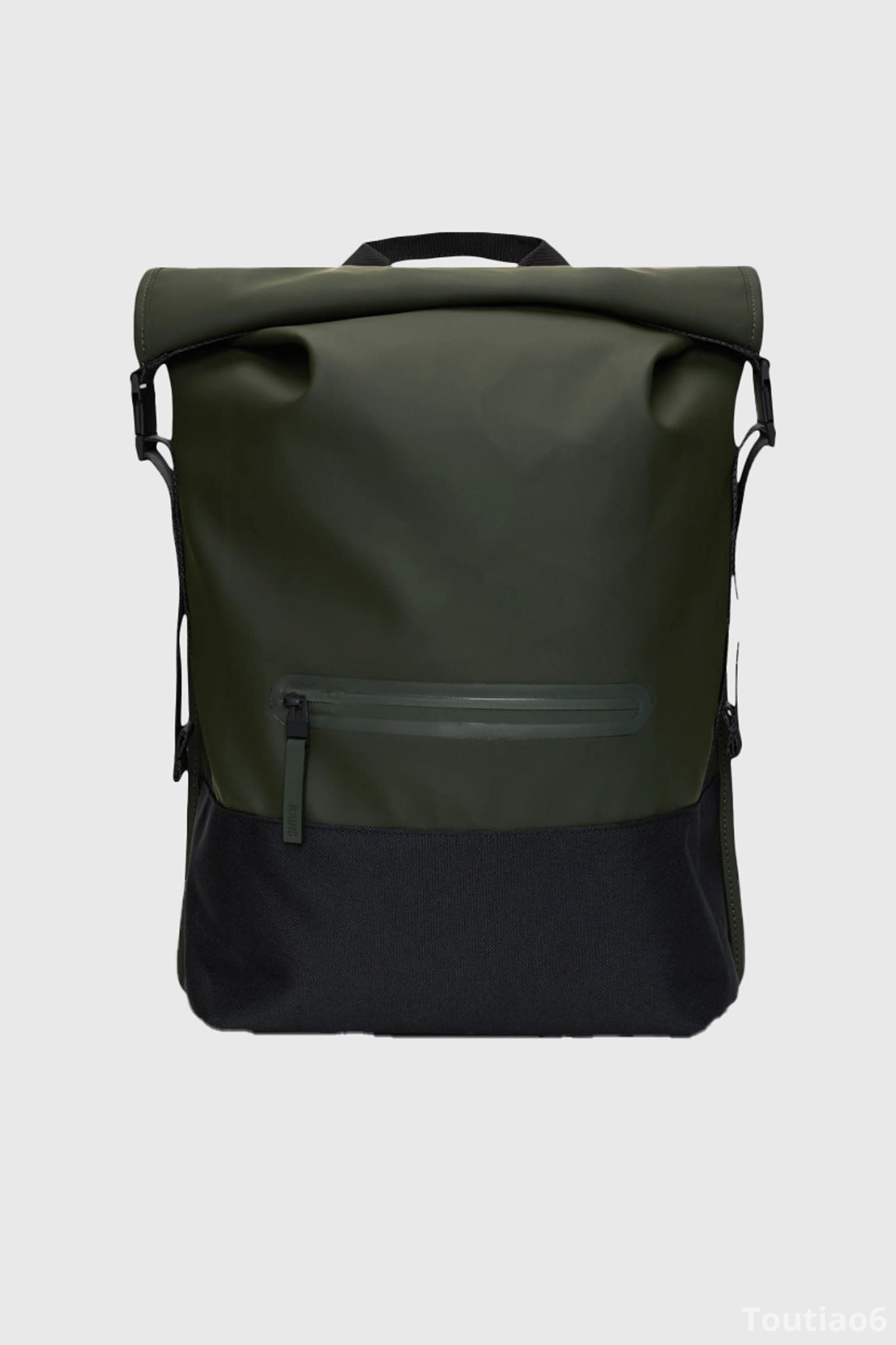 The Trail Rolltop Rucksack is made of Rains' signature waterproof PU fabric, designed to be sturdy, durable and pleasant to the touch.