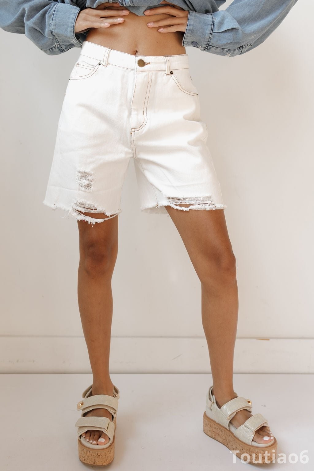 these shorts are so cute and so trendy! we love the longer mom short look for its coverage and fit! these are exactly that and so comfy!