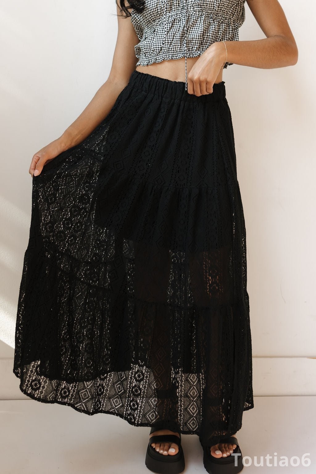 lace skirts are in! this skirt is so cute and versatile for any look and occasion! we love the lace detailing and how it's lined underneath!