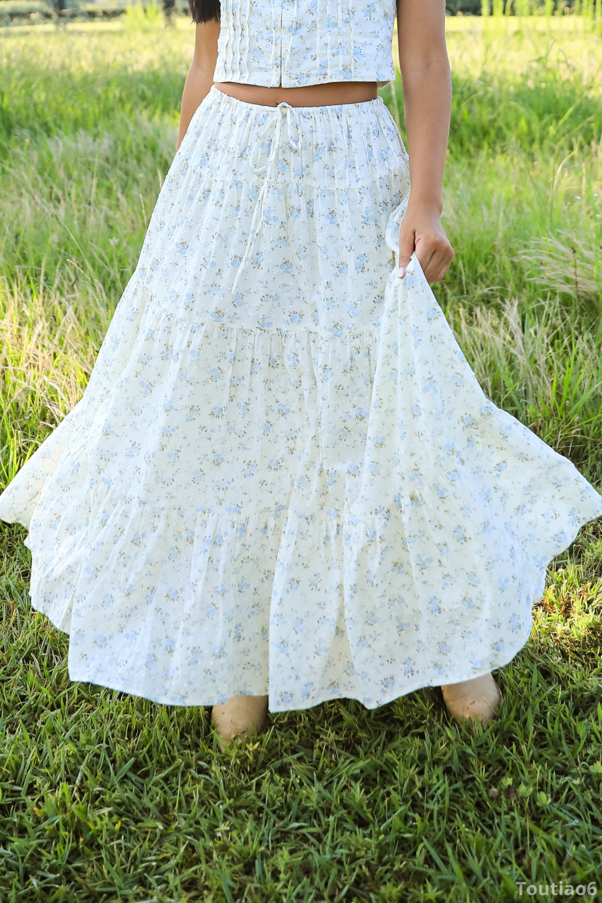 Whether it's the second date or the honeymoon, the Just Walk By Cream Floral Tiered Maxi Skirt makes an unforgettable impression no matter the occasion! Featuring a soft cream base adorned with a delicate floral print, this skirt flows beautifully with its tiered silhouette and lightweight fabric. Perfect for sunny days or breezy evenings, it pairs effortlessly with a fitted tank for a casual vibe or a blouse and sandals for a chic, elevated look!
