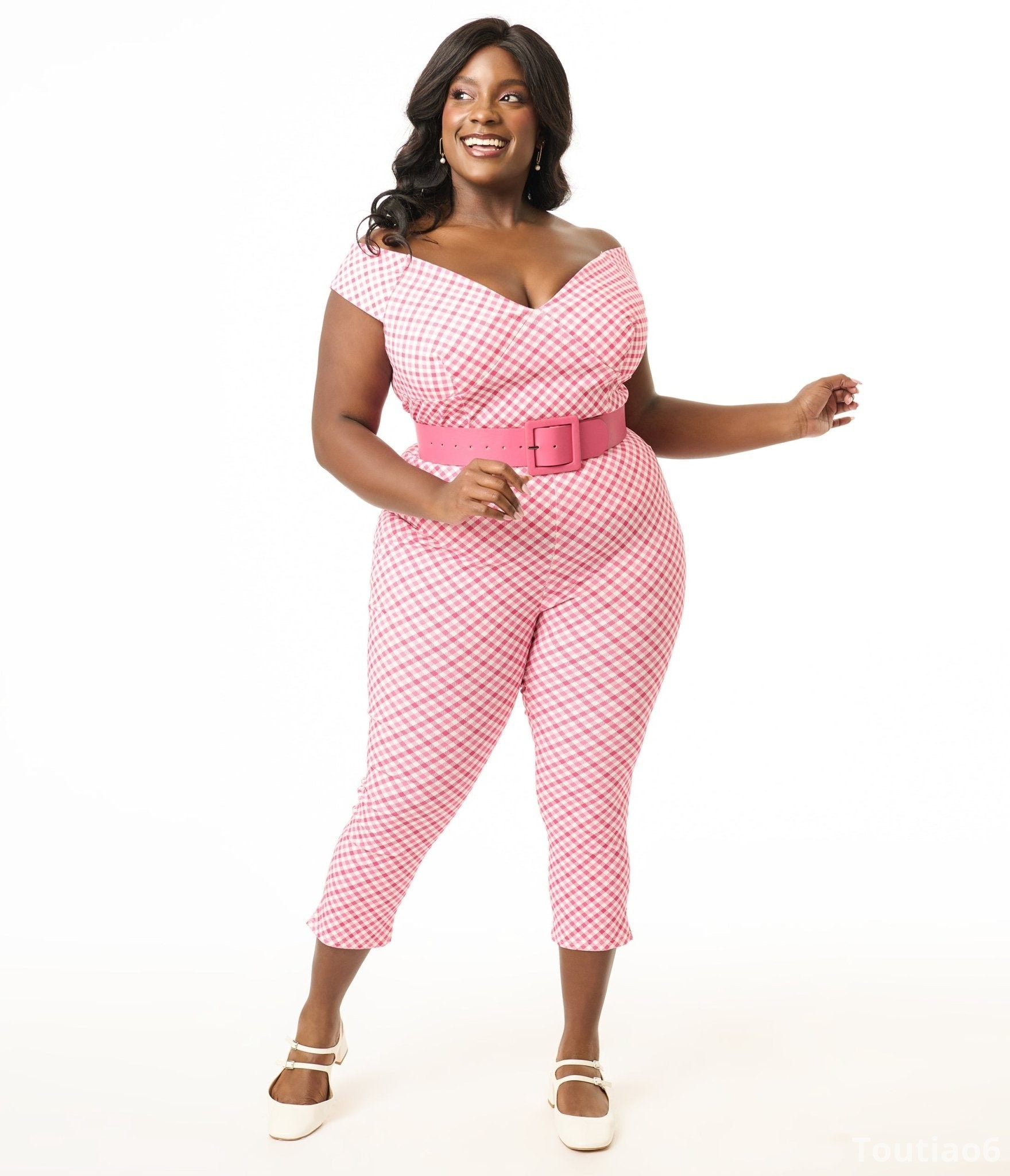 [Overseas]  Unique Vintage Plus Size 1950s Pink & White Gingham Rachelle Capri Pants