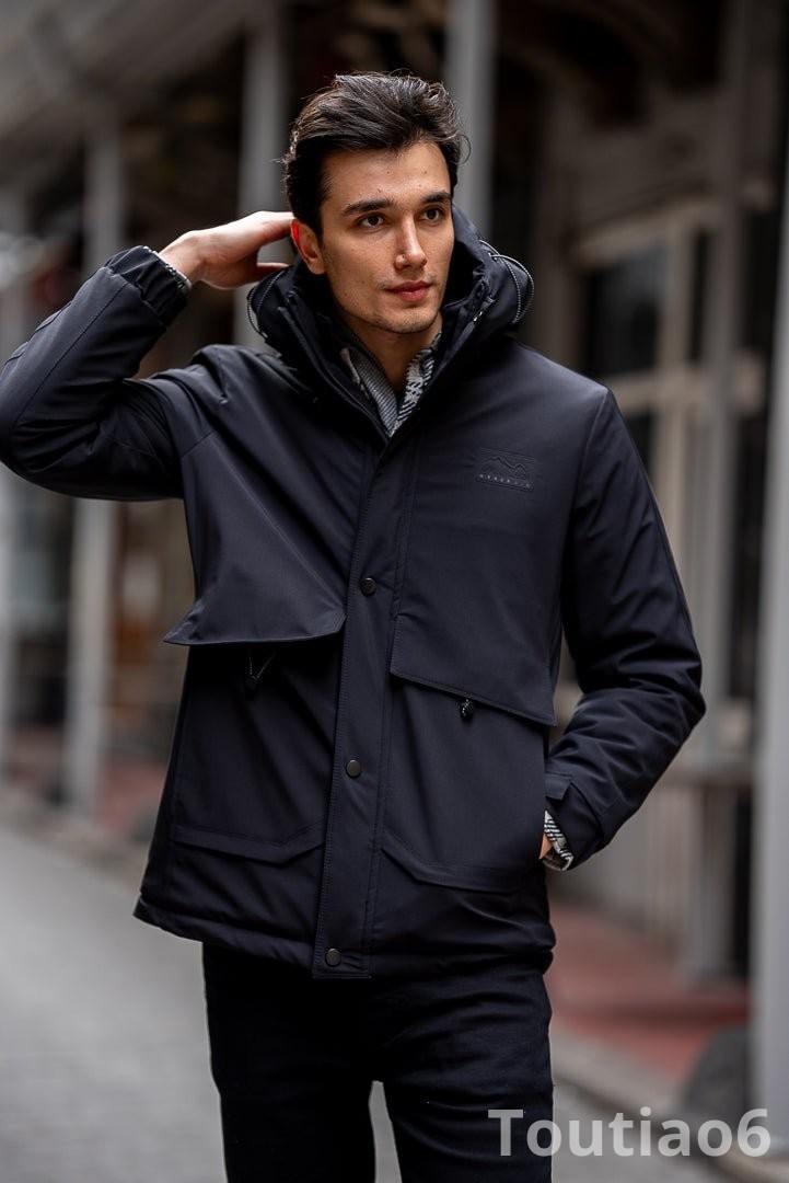 A black waterproof jacket made from 55% cotton and 45% polyester combines comfort with functionality. The cotton blend provides a soft, breathable feel, while the polyester enhances durability and water resistance. This jacket is designed to keep you dry in wet conditions, featuring a waterproof exterior and typically sealed seams to prevent moisture penetration. Its stylish black color makes it a versatile choice for both outdoor activities and casual wear, providing a blend of style and practicality for everyday use.