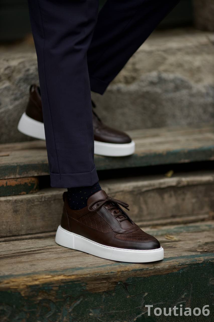 [Overseas]  Bojoni Denver Leather Checked Brown Shoes