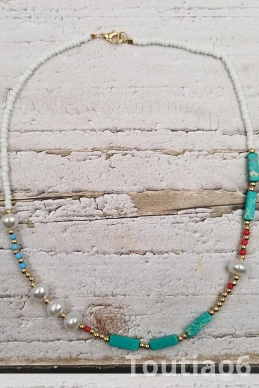 Handmade Bohemian Natural Stone Beads & Pearl Choker Necklace