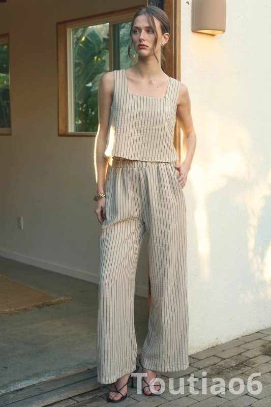 Highwaisted Pinstriped lounge pants with elastic waist band and pockets. Pair with the matching Eleanor Top for complete look.