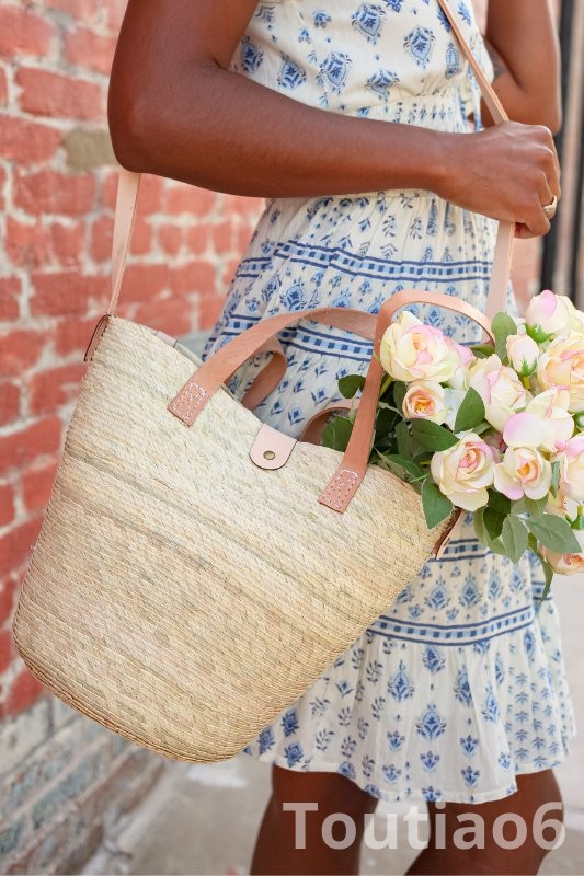 The small bucket canasta is great for day to day use with it's cross body shoulder strap and leather tote handles. Dimensions: 10.5" x 8" x 8" Shoulder strap length: 19”
