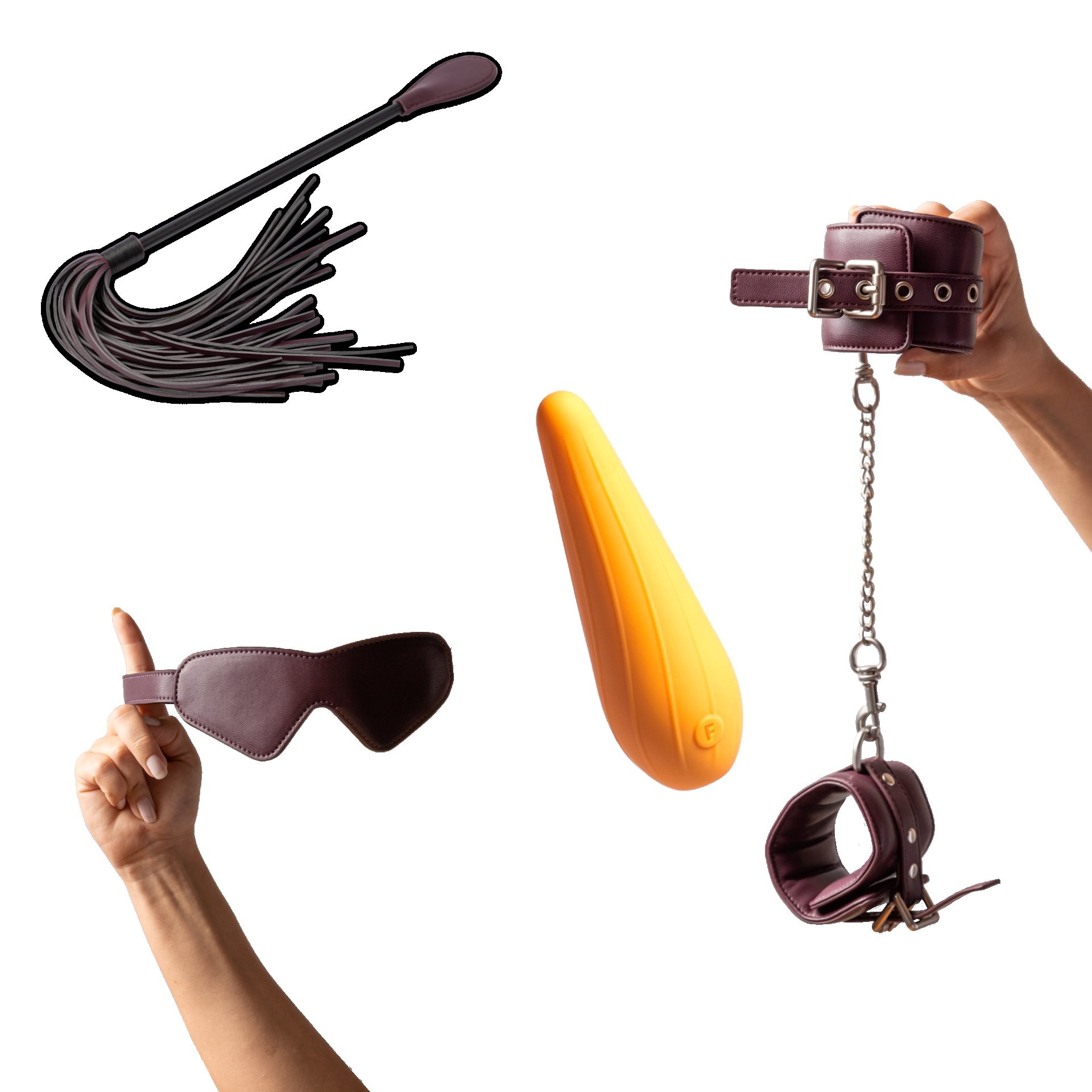 Kink Kit | Explore your fantasies with an elevated twist on kink essentials. Mix & match your blindfold, padded cuffs, crop & tassel for a rollercoaster of sensations, from soft and playful to deliciously intense.