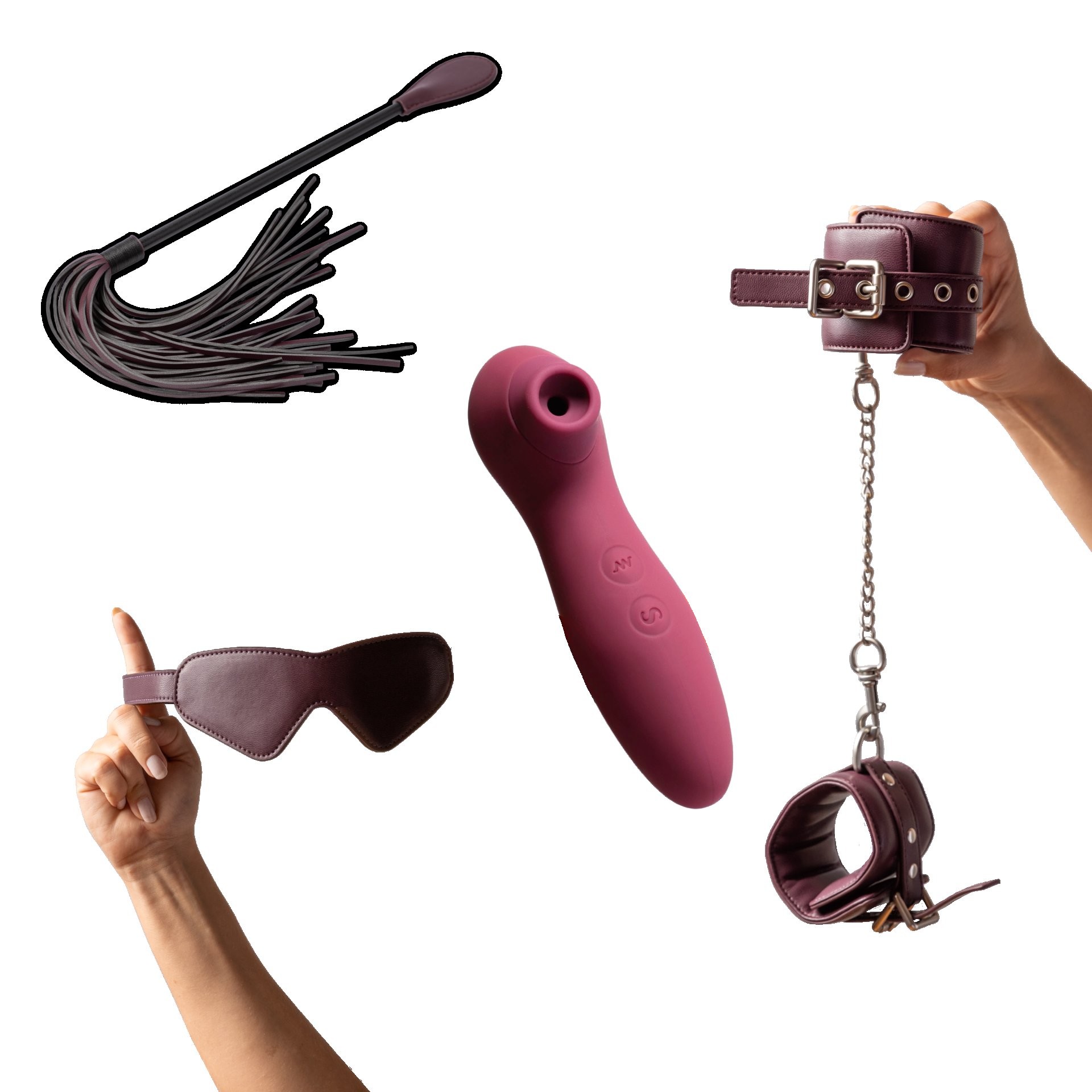 Kink Kit | Explore your fantasies with an elevated twist on kink essentials. Mix & match your blindfold, padded cuffs, crop & tassel for a rollercoaster of sensations, from soft and playful to deliciously intense.