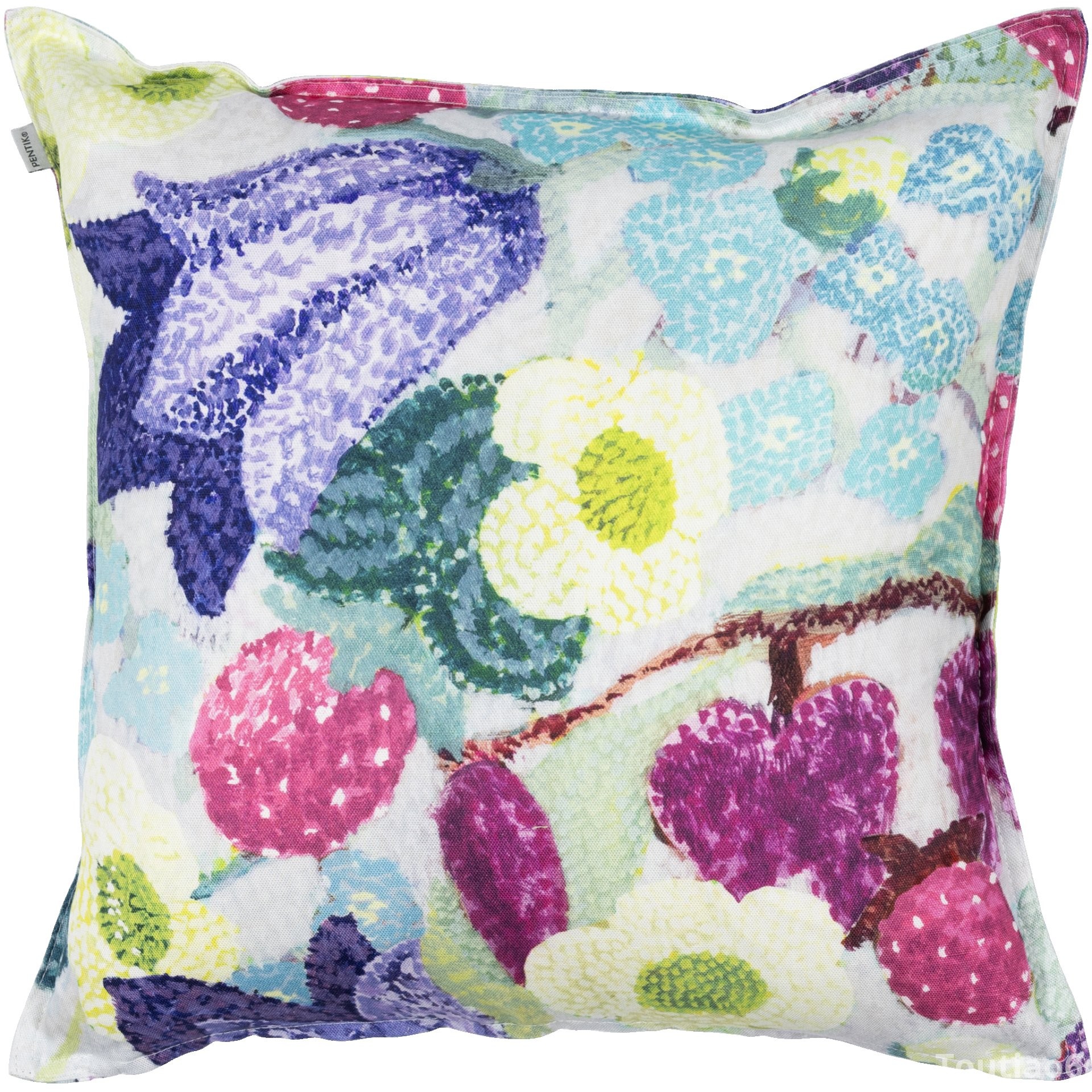 Summer plans sorted – play, laughter and living in the moment. The light and warmth of a northern summer, with colours glowing everywhere, invites you to go out and make memories, live fully and in the moment. The Kesä (Summer) pattern, designed by Lasse Kovanen includes Wild strawberries, Meadow buttercups, Bluebells and Cranesbills, all boldly put together. The outcome is full of childlike joy and carefree spirit. Lasse painted the pattern using the traditional tempera technique in a pointillist painting style. The playful and lush summer pattern is available as table setting and kitchen textiles, cushion covers and fabrics.The colourful cushion cover of the Kesä collection measures 45x45 cm so it is perfect with Pentik's 48x48 cm inner cushion, which will make the cushion look full with no extra space in the corners. The summer cushion cover is made of 100 % cotton.